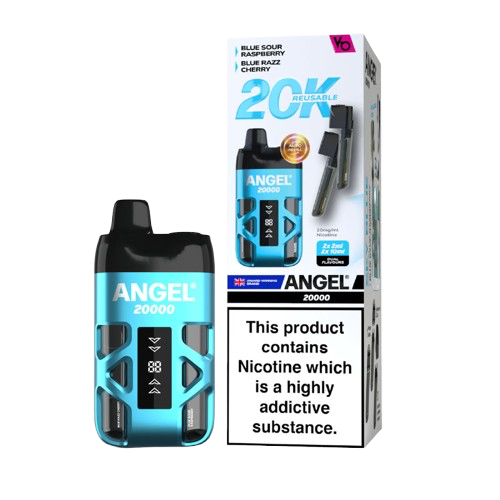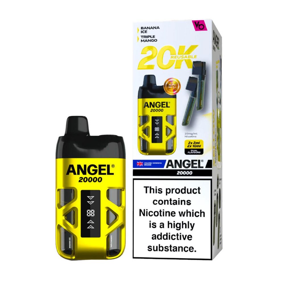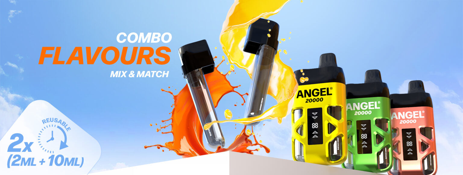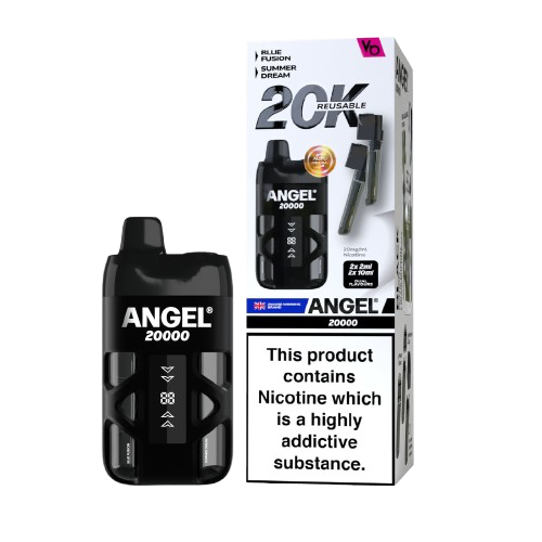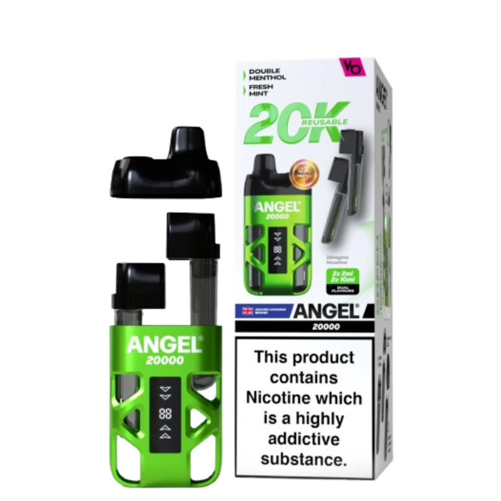 Angel 20K  kit provides the same convenience and experience as a disposable vape with a dual flavour system providing upto 20,000 puffs depending on the length of each draw.