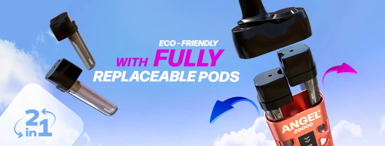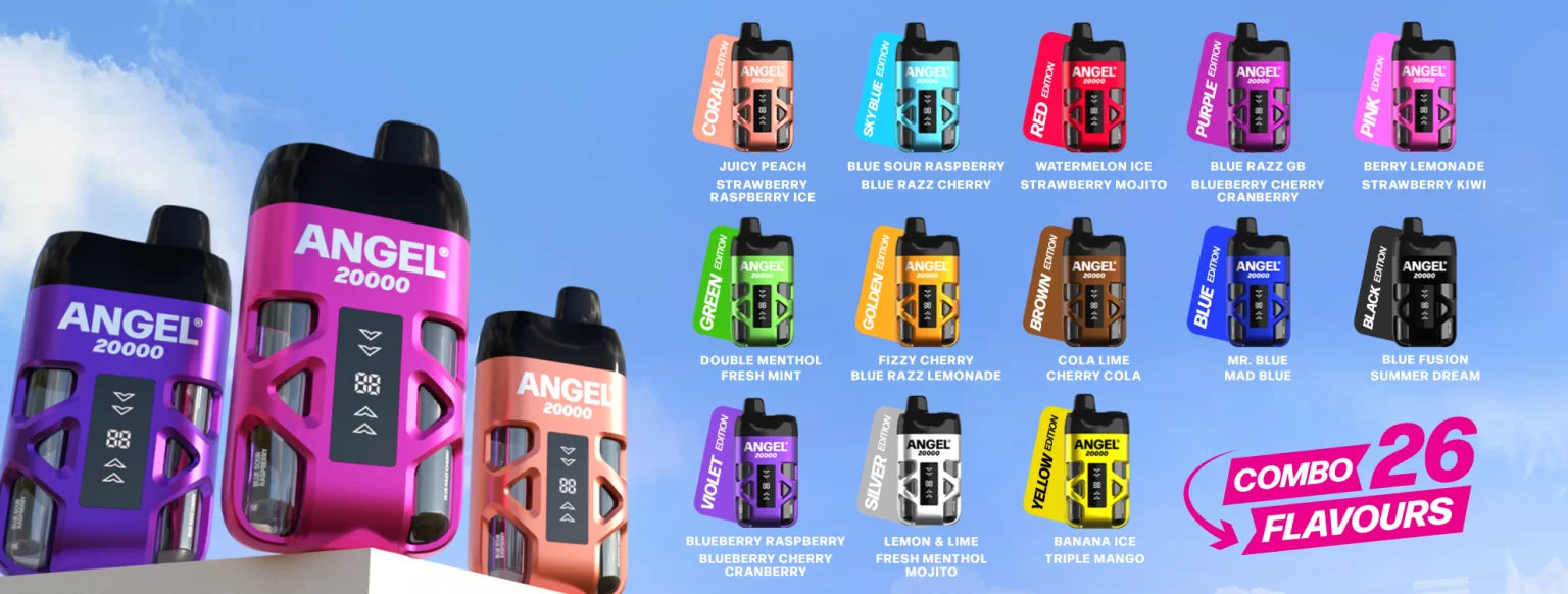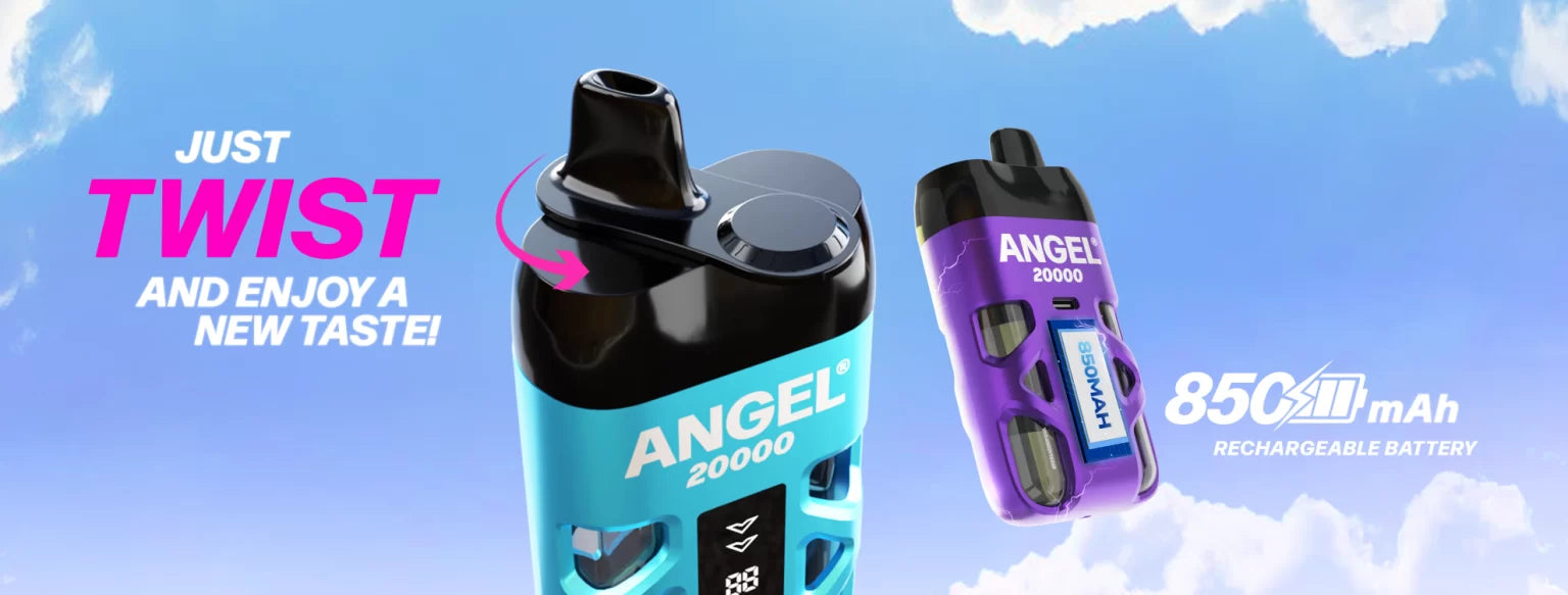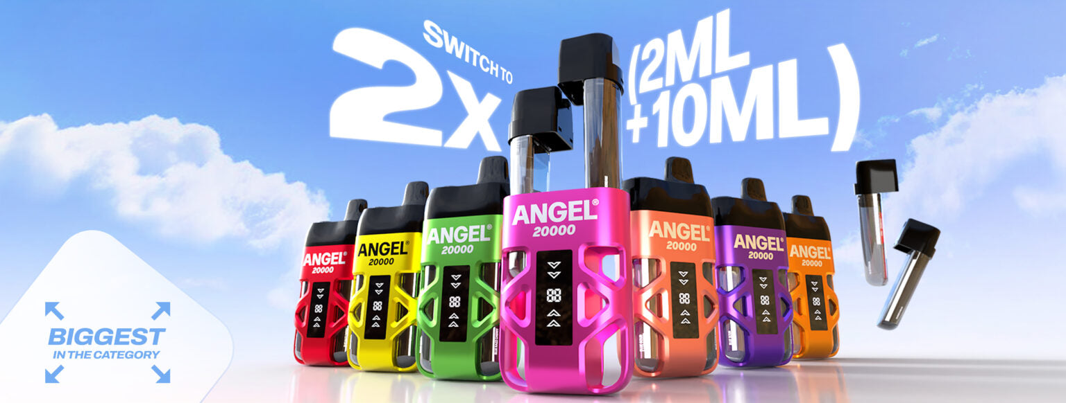 Angel 20K  kit provides the same convenience and experience as a disposable vape with a dual flavour system providing upto 20,000 puffs depending on the length of each draw.